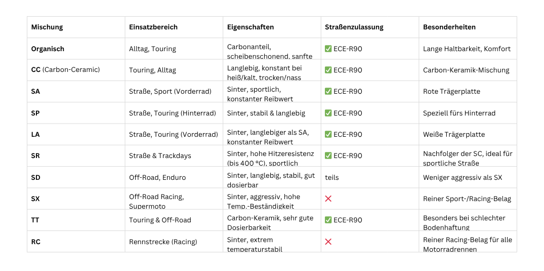 ⚙️ Die Brembo-Mischungen im Überblick